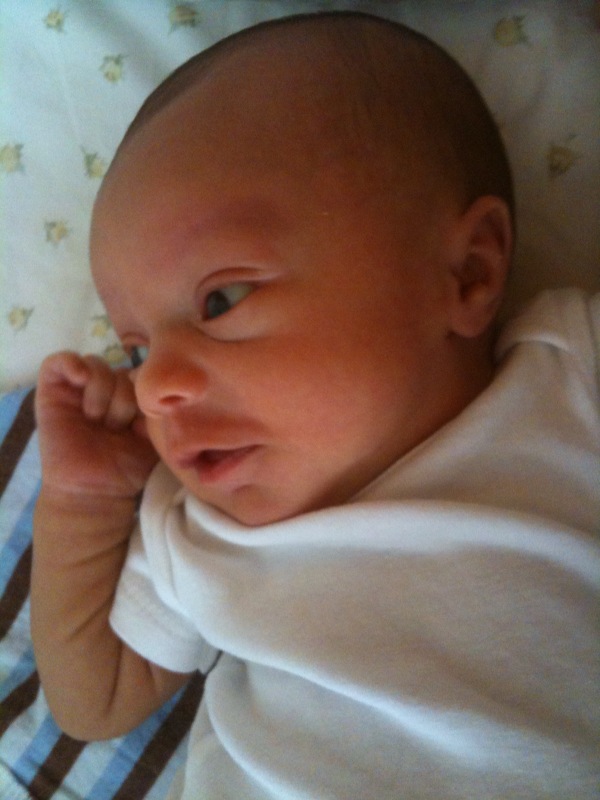 Mama Kate and Finn McKeinle stopped over for a visit. Finn proved that he is much bigger than his twin friends. He is a very handsome boy.